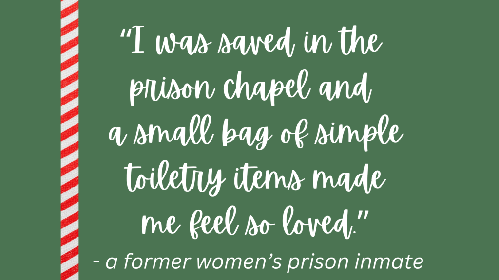 Volunteers from multiple ministries and churches are working together to develop the annual toiletry bag for women in the prison to receive a Christmas Gift Bag in December 2024.